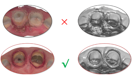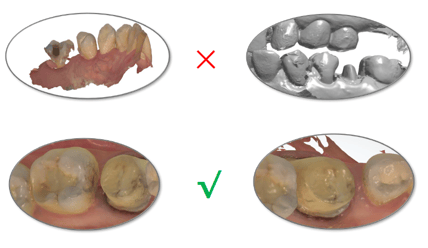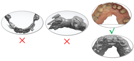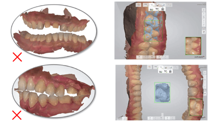 Slow down and ensure full 360° capture of the pontic site, including ridge contour and soft tissue.